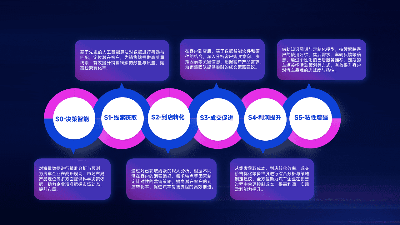 通过拓宽潜在客户来源、、优化线索分配并提高到店转化率,,,以增强销售效率。。。同时,,,利用线索数据不断优化分析模型,,有效提升转化率,,扩大营销影响力。。。。